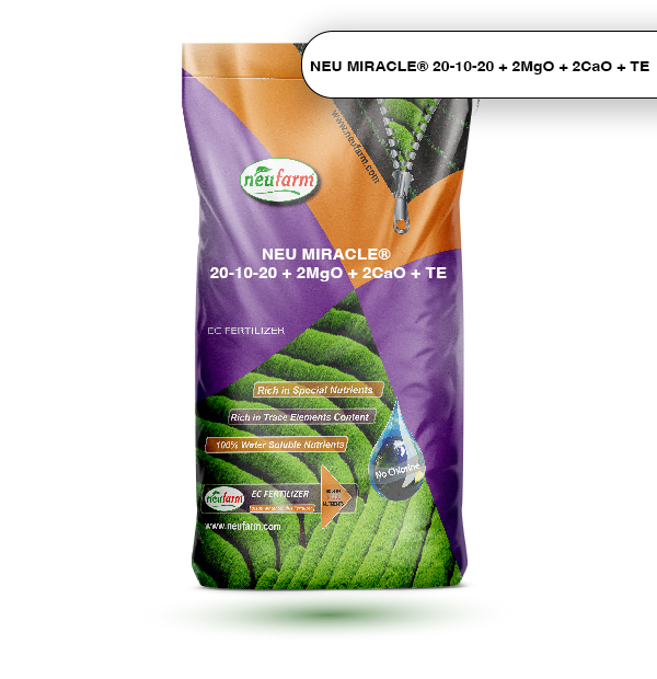 Neufarm > Products > Fertilizers > Water Soluble Npk Drip and Foliar Fertilizers > NEU MIRACLE® 20-10-20 + 2MgO + 2CaO + TE