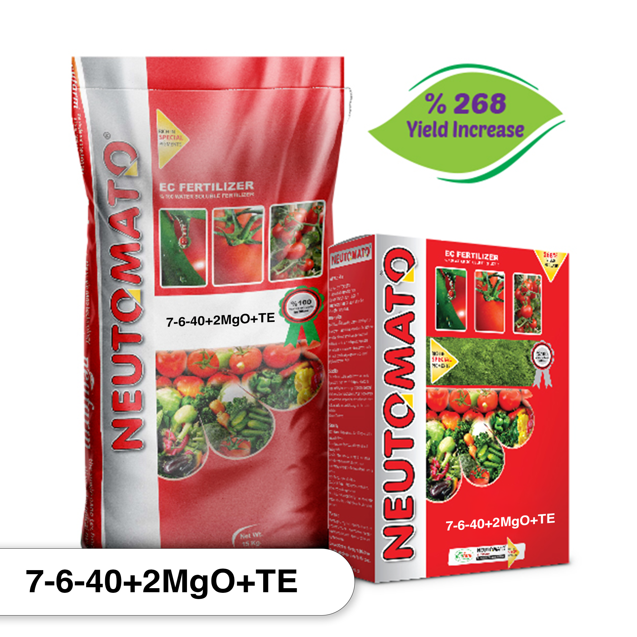 NEU TOMATO® 7-6-40 contains very high potassium with low nitrogen and phosphorus, enriched with 2% MgO and EDTA-chelated trace elements (B, Cu, Fe, Mn, Zn) for advanced fruit ripening and quality enhancement.